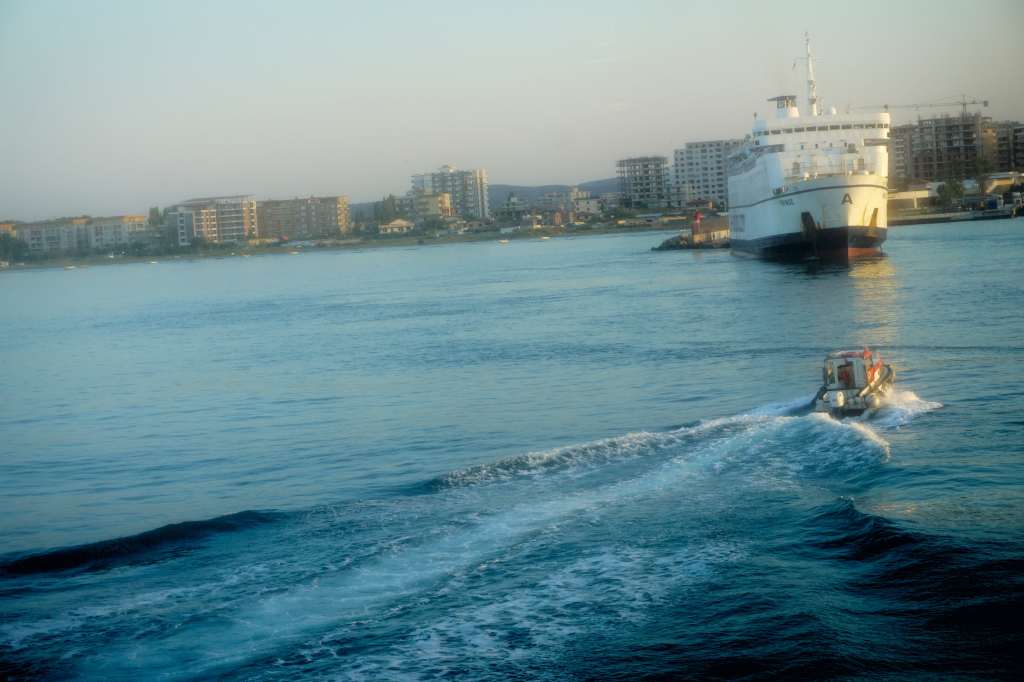 È una foto apparentemente silenziosa, ma che racchiude un caos all’interno. Mettendola a confronto con la foto 11, si entra in una sequenza di immagini a colori. Si vede chiaramente la barca che sta abbandonando la riva, dietro la quale si intravede lo skyline di palazzi, e quindi di civiltà: una foto molto rumorosa, subito a primo impatto. Si percepisce il forte rumore indistinto della città alle spalle. Si può anche sentire il motore di quello che potrebbe essere un motoscafo. La foto a colori crea un effetto visivo completamente diverso: si immagina meno l’avventura e si pensa invece alla concretezza e alla praticità. È una foto più vicina a noi, ma che lascia meno spazio ai sogni. Parla da sola.