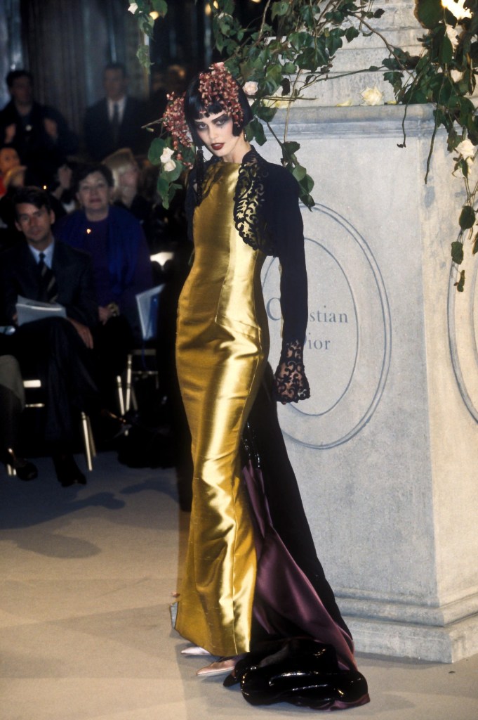 Dall’altro lato della medaglia, si trovano le sfilate di Haute Couture, che si trasformavano in spettacolo puro. Mentre la strada proponeva anticonformismo e ribellione, le grandi maison italiane e francesi celebravano il sogno e la visione della moda con creazioni stravaganti, considerabili più opere d’arte che abiti. Gianni Versace, icona indiscussa della moda dell’epoca, portava in passerella una femminilità sensuale e potente, caratterizzata da spacchi vertiginosi, oro e stampe barocche. Dior, sotto la collezione di Gianfranco Ferré, dava vita a silhouettes architettoniche e raffinate che omaggiavano il vero Christian Dior, amante della vita strettissima e femminilità. Intanto, una delle personalità più di spicco di quegli anni, John Galliano (prima da Givenchy e poi da Dior) rompeva ogni schema con sfilate degne di esser considerate vere e proprie performance teatrali, in cui arte e storia si mescolavano all’eccesso. In un decennio dominato dalla ribellione e dal minimalismo, l’haute rappresentava il lato onirico e stravagante della moda.