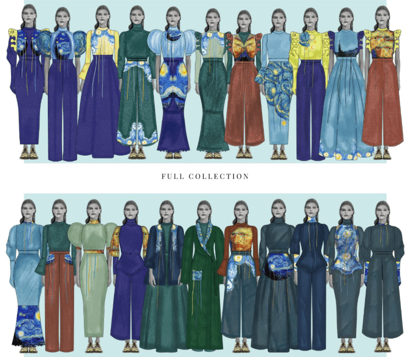 Ilaria Pinelli presenta una collezione concettuale interamente ispirata a Starry Night, il celebre capolavoro di Vincent Van Gogh, confermando che arte e moda non solo si incontrano, ma si fondono in un dialogo creativo senza confini.