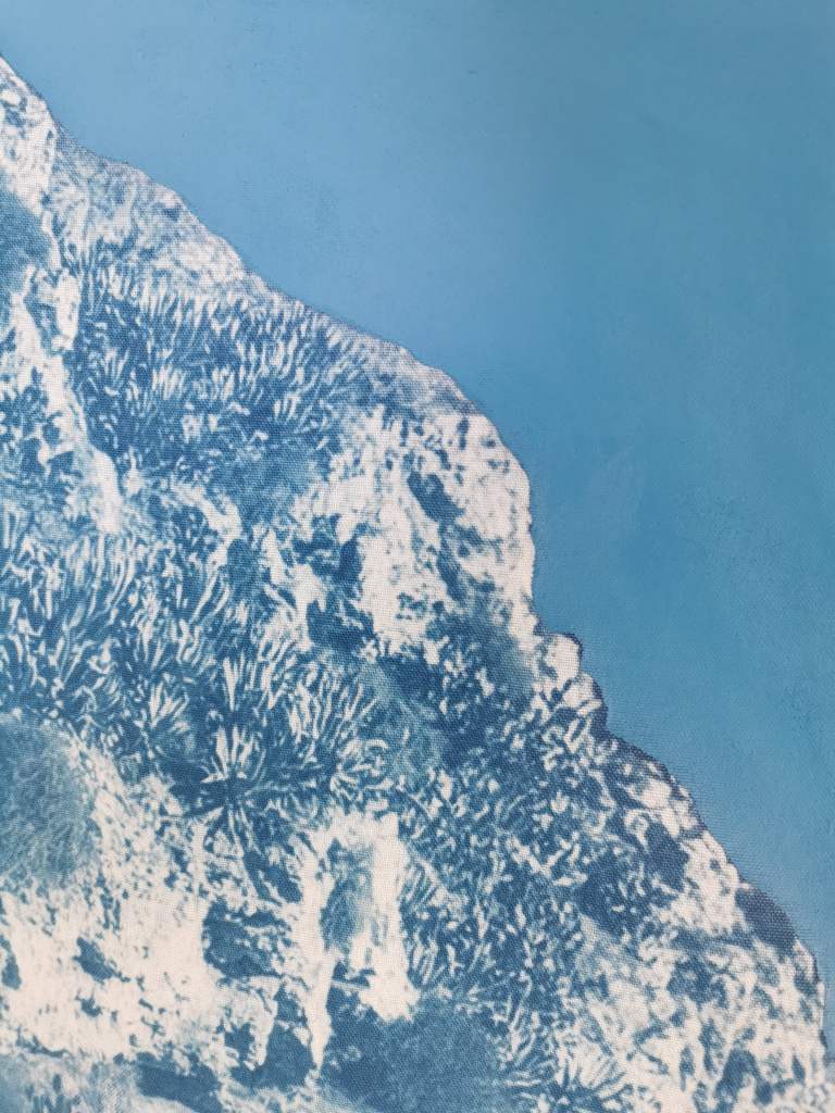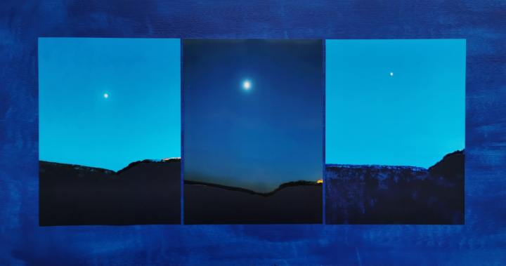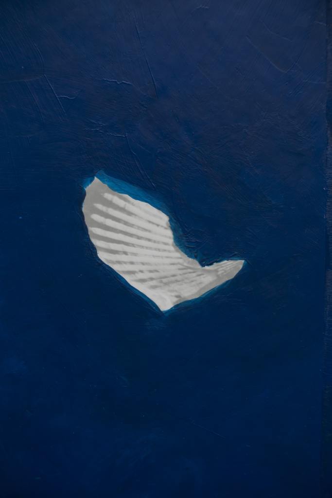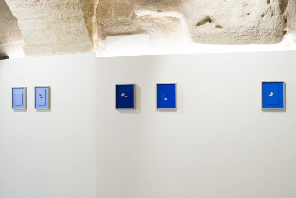 I luoghi che hanno suggestionato principalmente l’artista sono i sentieri che collegano la città alle grotte della Murgia e i calanchi di Pisticci, trattasi di un paesaggio lunare modellato da erosioni millenarie, nel quale è possibile incontrare fossili che raccontano un’esistenza che fu, indubbiamente, un luogo dal fascino indiscusso, dove un artista non può che rimanere abbagliato e trarne ispirazione. Questo luogo rientra perfettamente nelle corde di Tagliafico, artista che gioca con le varie tecniche fotografiche e materiali comuni dandogli una nuova vita. L’artificio entra in sinergia con gli elementi naturali e l’antico con il contemporaneo. Ma il vero protagonista della mostra è il blu, che ci riporta non solo a una sensazione di quiete, come è stato affrontato in precedenza, ma è un colore identificativo del luogo ospitante della mostra e che ha fatto da “musa” all’artista.