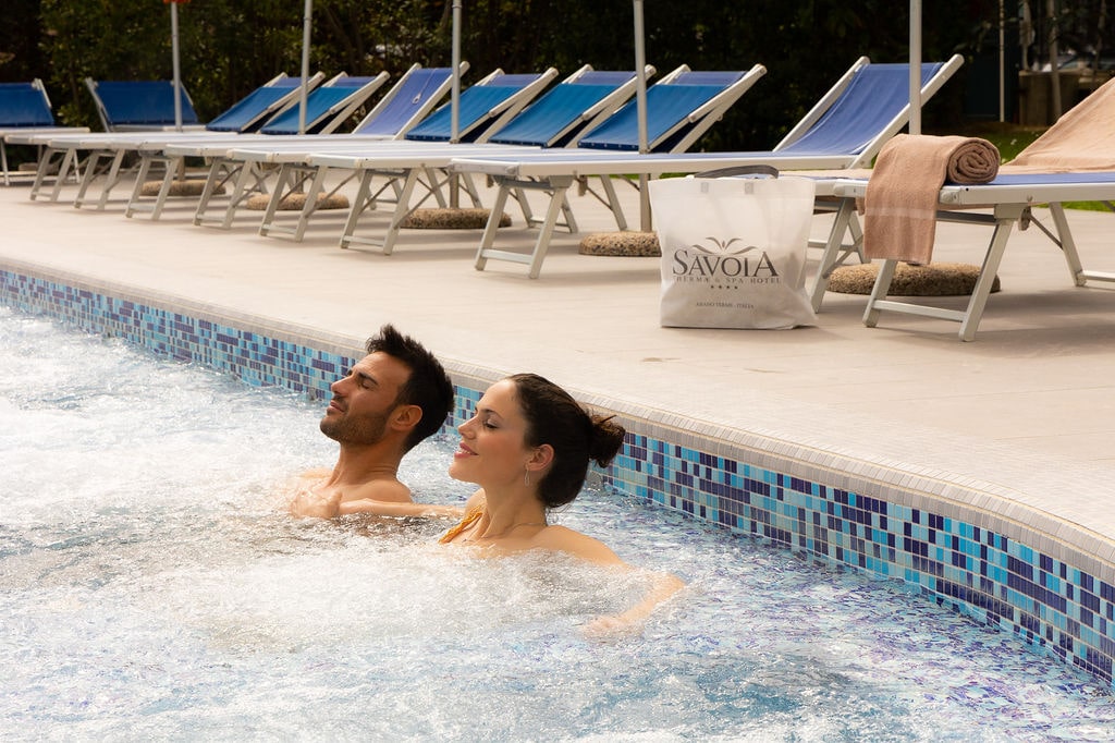 Innanzitutto, l’acqua termale ha un effetto rilassante, per cui va a lavorare sui problemi articolari, muscolari e di artrosi attraverso il suo effetto di caldo antinfiammatorio. L’acqua ha anche un effetto antalgico, infatti la utilizziamo anche in ambito estetico. Per problemi della pelle e arrossamenti, l’acqua termale è benefica. Inoltre, essa è arricchita di ozono, che va a lavorare sulla microcircolazione, dandoci sia un beneficio a livello curativo, che anche a livello estetico. In casi di insufficienza venosa, l’acqua termale arricchita di ozono va a lavorare sulla microcircolazione e dona benessere anche contro la pesantezza delle gambe, soprattutto nei periodi più caldi.