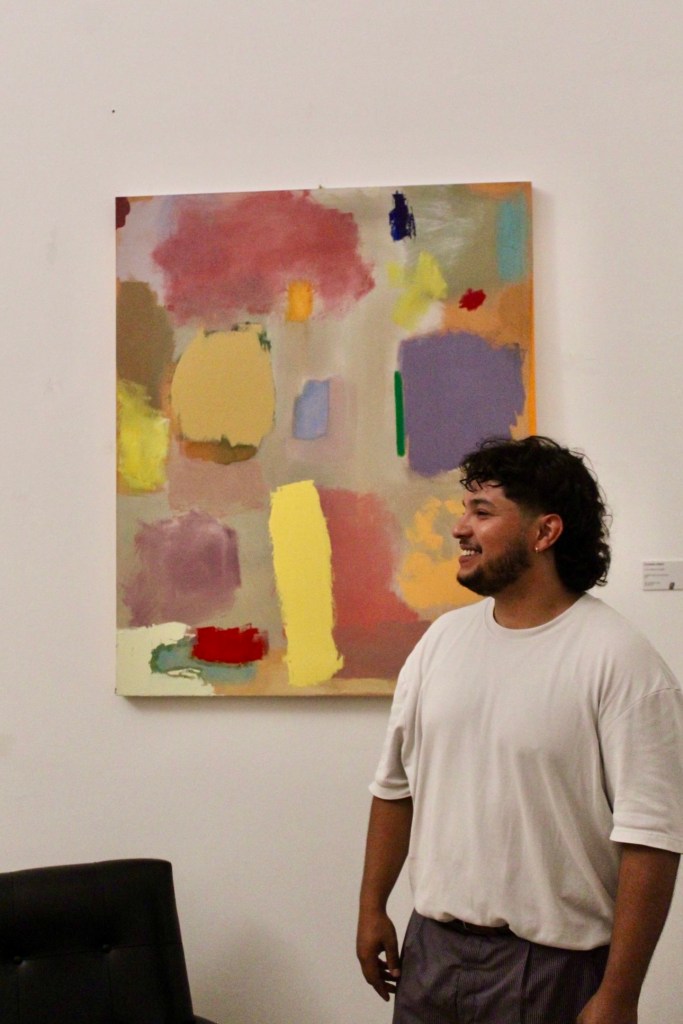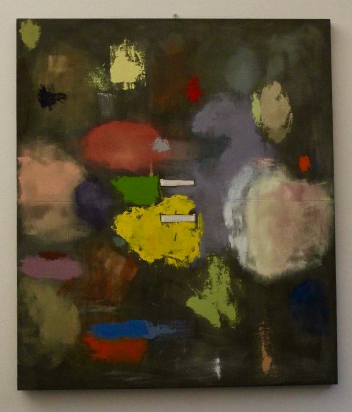 Un’intera sala presenta opere in cui lo sfondo a pastello ospita strokes variopinti e multiformi realizzati a olio. Nel gesto di versare colore sulla tela, liberando colori e forme da ogni costrizione, si lascia qualsiasi pretesa di controllo sull’opera. Toni opachi e lucidi, forme pesanti e leggere si incontrano bilanciandosi: ogni tela esiste a sé come paesaggio, in cui elementi gonfi, sottili, sferzanti o delicati comunicano tra loro. Le opere vivono in sintonia con l’artista: nel momento in cui traccia la prima pennellata, le vede già finite. L’immaginario è dichiaratamente quello del bebop; l’improvvisazione il momento in cui chi improvvisa non si distingue dall’opera improvvisata.