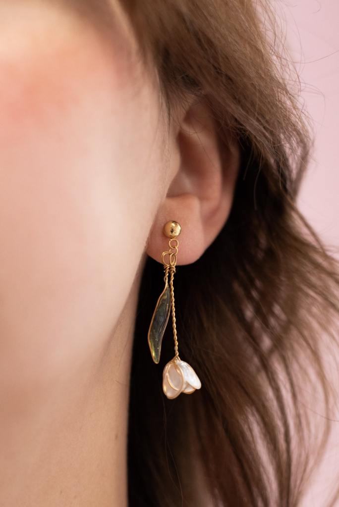 Vale la pena sottolineare che non si tratta solo di oggetti belli da guardare e da indossare. Difatti, ogni fiore, ogni elemento viene scelto anche per il suo significato simbolico: “Vado a capire la simbologia del fiore stesso, cosicché possa essere anche un’idea regalo pensata per il cliente”. L’intento più profondo è chiaro: “Voglio far sentire bene le persone. Farle sentire a loro agio, comprese, speciali. Anche chi non si riconosce nello stile dei gioielli più comuni trova nei miei pezzi qualcosa che parla davvero di sé”. Ogni creazione ha una storia. Alcune nascono da uno schizzo su carta, altre da un’improvvisazione in studio. Tra le più amate ci sono i tulipani bianchi, delicati ed eleganti, ma i suoi preferiti restano i mughetti, che le ricordano boschi incantati e fate, e la collana Forest Grace, pezzo unico creato per caso e subito diventato un must.