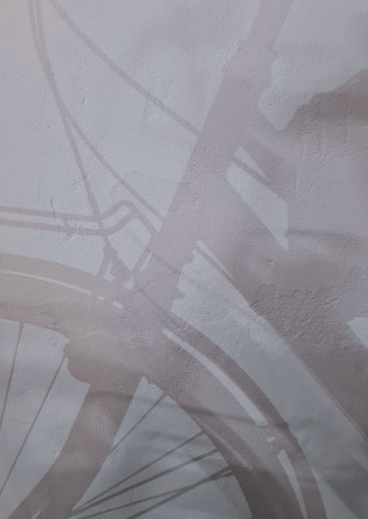 Alla fine, sono arrivata a due soluzioni: la prima consiste nell’utilizzo delle ombre: quella di una bicicletta, simile al modello che usava mio nonno. Poi ho ricreato le ombre degli alberi che si possono vedere per strada, essendo la strada che conduce da Pescara a Catignano molto ricca di vegetazione. Queste ombre evocano il ritmo naturale del paesaggio attraversato.