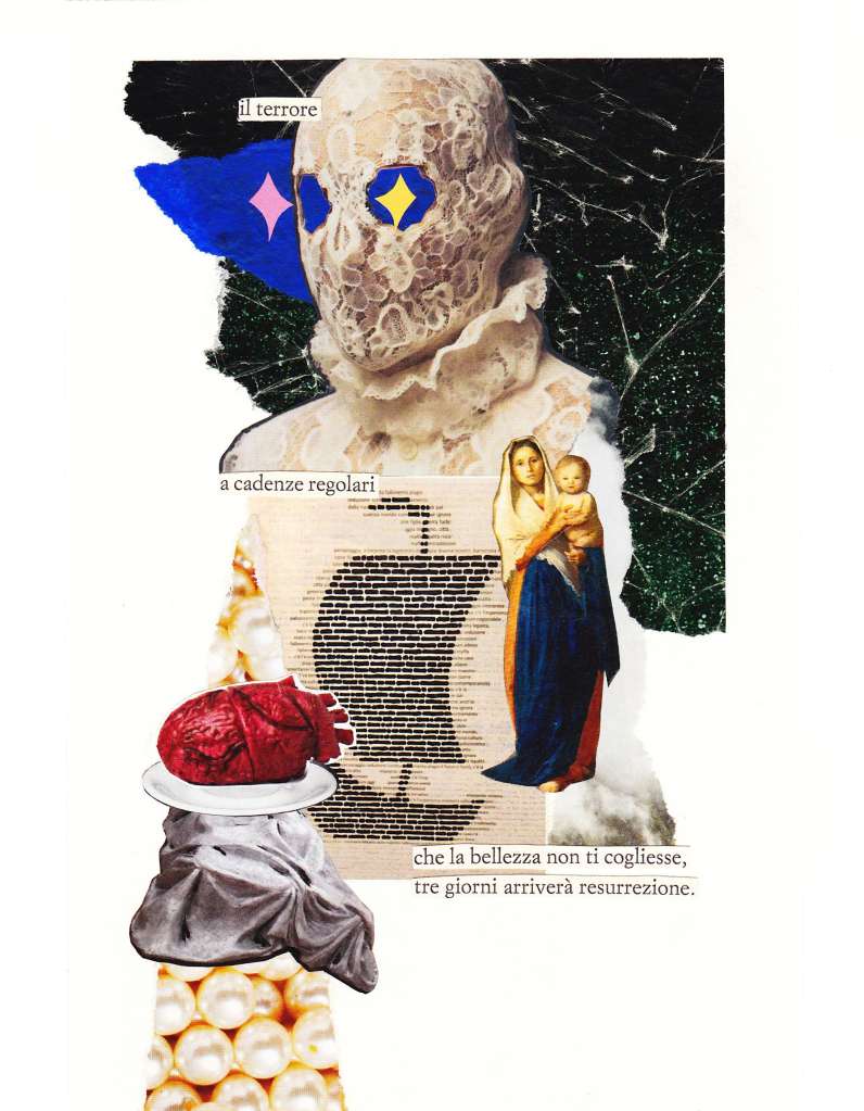 Beibi Laplà è il nome d’arte della collage artist campana Elisabetta Panico. Beibi ha frequentato l’Accademia delle Belle Arti di Napoli, dove si è laureata con il massimo dei voti. Attraverso questa formazione, sviluppa una ricerca che intreccia immaginazione, frammento e poesia. Elisabetta ha pubblicato due raccolte poetiche e collaborato con diverse riviste internazionali, arrivando anche a collaborare con il mondo della musica realizzando la copertina “Soulmates” del trombettista Aniello De Sena.