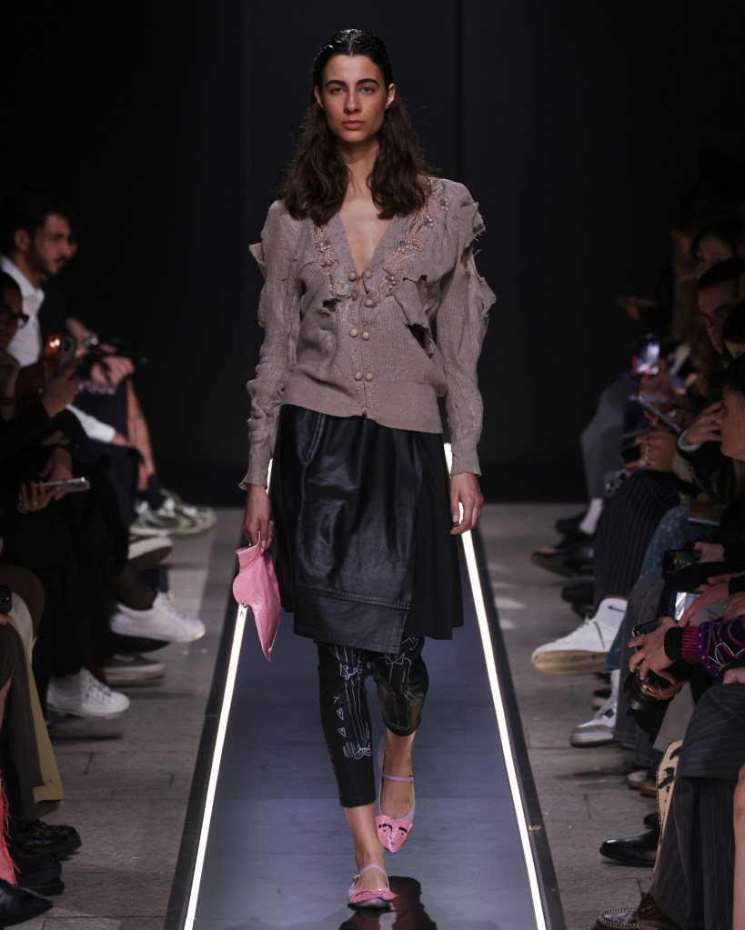 Della tua sfilata, il momento iniziale, quei messaggi vocali delle tue zie sono arrivati in maniera molto diretta. Prima ancora dei vestiti, prima ancora del ritmo della sfilata, sono entrate delle voci. E con quelle voci è entrata una forma di intimità che ha cambiato subito il registro di tutto quello che sarebbe venuto dopo. Mi piacerebbe capire perché hai sentito il bisogno di iniziare proprio da lì.