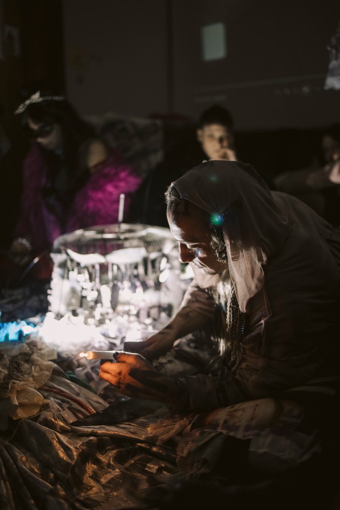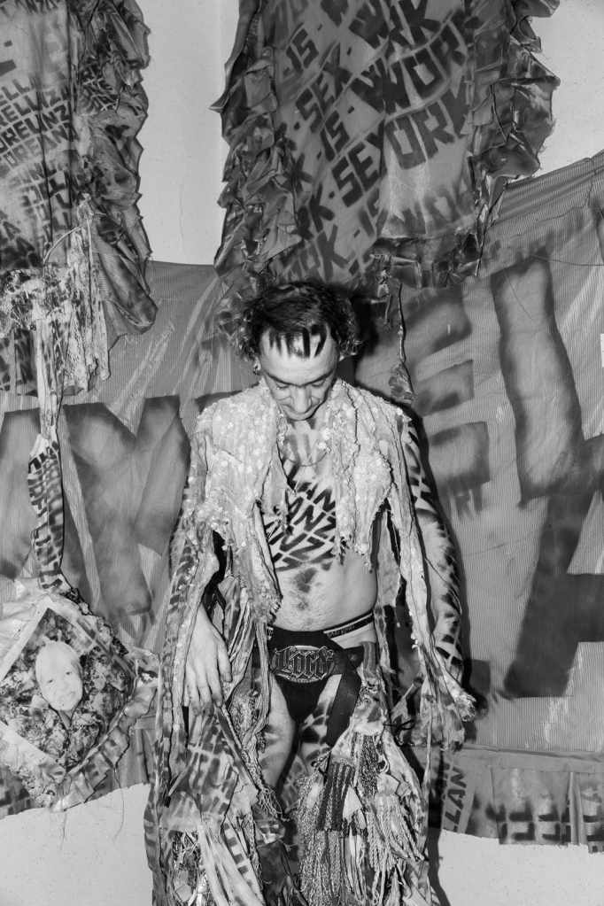 C’è in questo modo di fare qualcosa che riguarda l’appartenenza, ma non quella in forma rassicurante. Piuttosto una linea irregolare, fatta di vite cresciute nello scarto e nell’attrito, dentro una distanza continua tra ciò che si è e ciò che si dovrebbe essere. È dentro questa linea che si colloca anche la sua esperienza queer, come condizione che attraversa tutto: i gesti, i materiali, le relazioni, il modo stesso di stare nei luoghi. Nel suo lavoro questa materia non viene mai semplificata, resta lì in tutta la sua densità. Sudore, vergogna, sesso, devozione convivono con cultura, arte, religione, senza che si crei una vera separazione. Il sacro non è distante dal quotidiano, ma lo attraversa, come accade in certi contesti in cui la sopravvivenza e il rito finiscono per coincidere perfettamente.